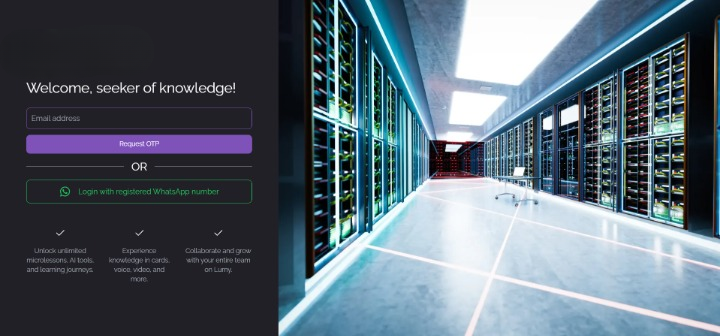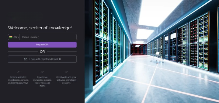 While the user manual specifies email OTP, Lurny KxP also supports WhatsApp OTP for login. Enter your registered mobile number associated with WhatsApp, and an OTP will be sent to your WhatsApp number. Enter this OTP into the Lurny KxP platform to securely log